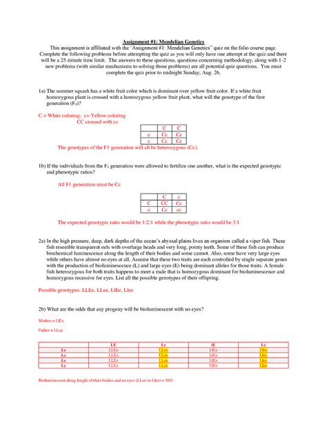 Download Mendelian Genetics Homework Answer Key Doc